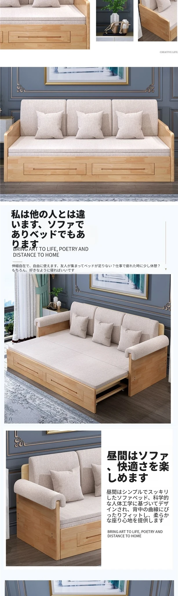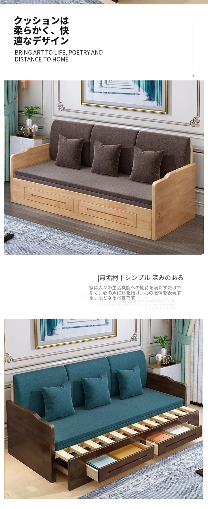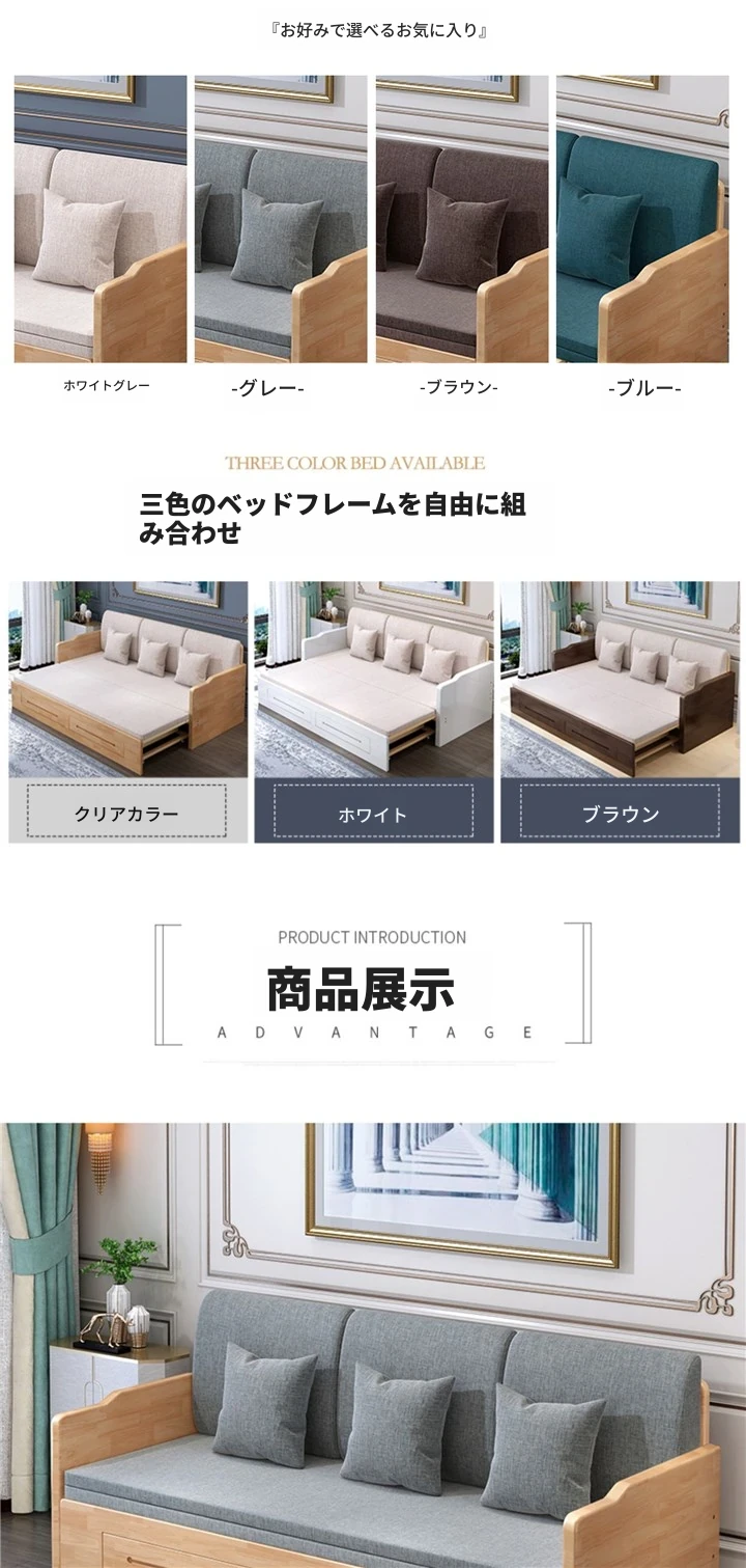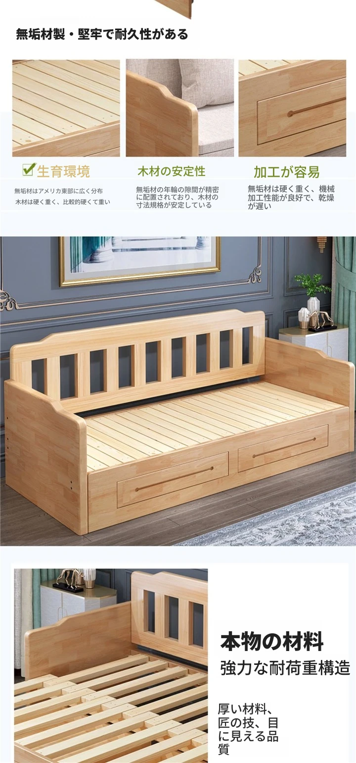 折りたたみ式の実木ソファベッド、2WAYデザイン!小型住宅に最適な1.5mの多機能エコノミーソファベッド。快適な寝心地と空間を有効活用できる優れたアイテム!