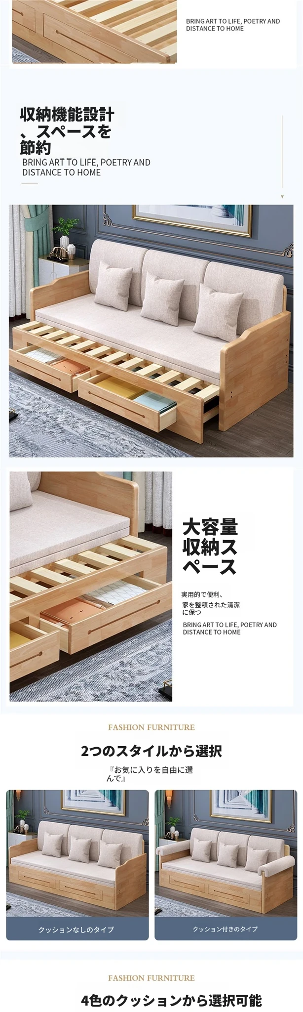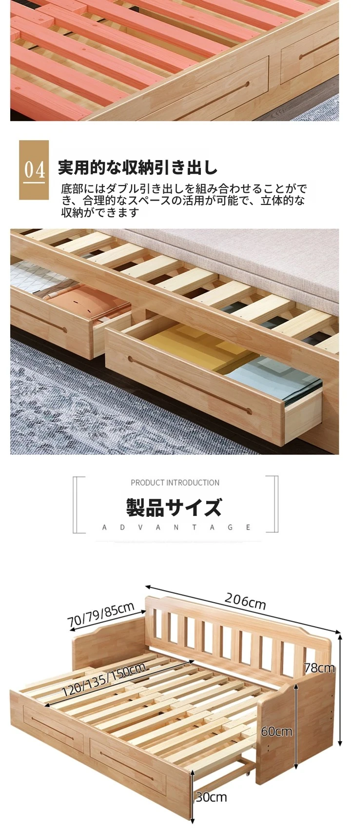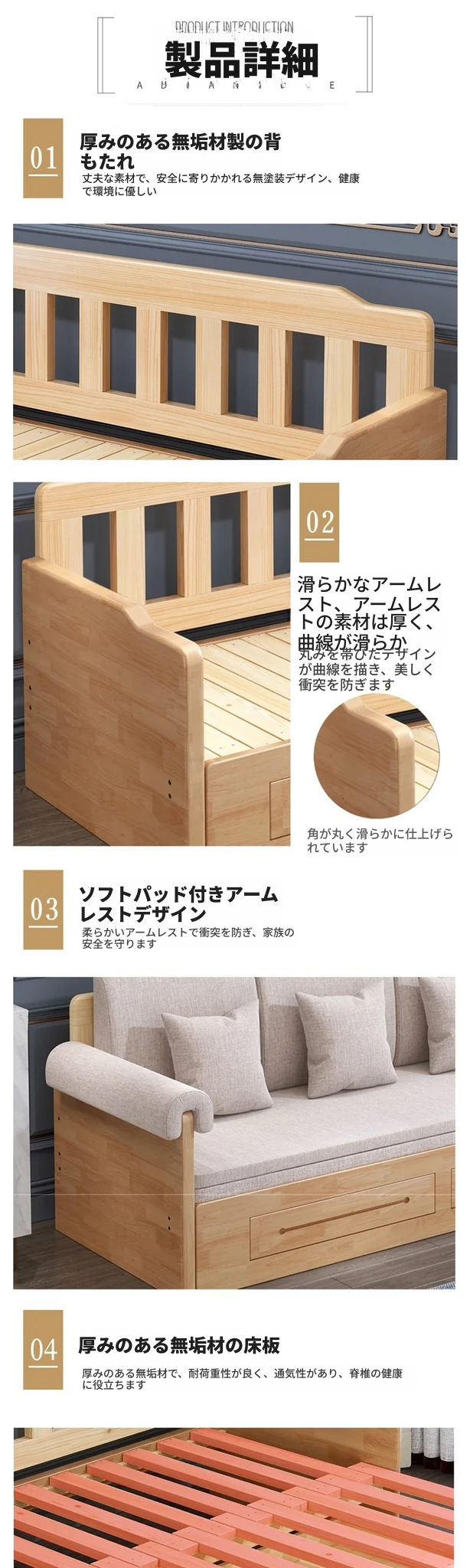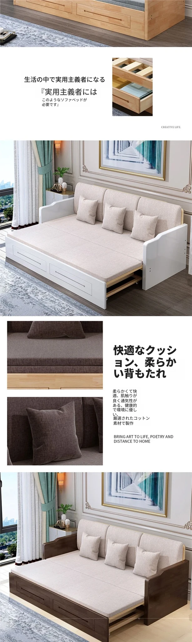 折りたたみ式の実木ソファベッド、2WAYデザイン!小型住宅に最適な1.5mの多機能エコノミーソファベッド。快適な寝心地と空間を有効活用できる優れたアイテム!