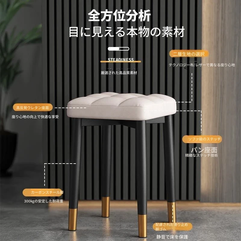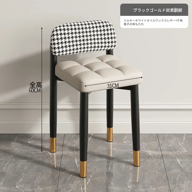 北欧風の軽奢華化粧スツール|おしゃれな女性のための寝室用ドレッサーチェア|インスタ映えする背もたれ付き小スツール!快適さとデザインを両立した一品。