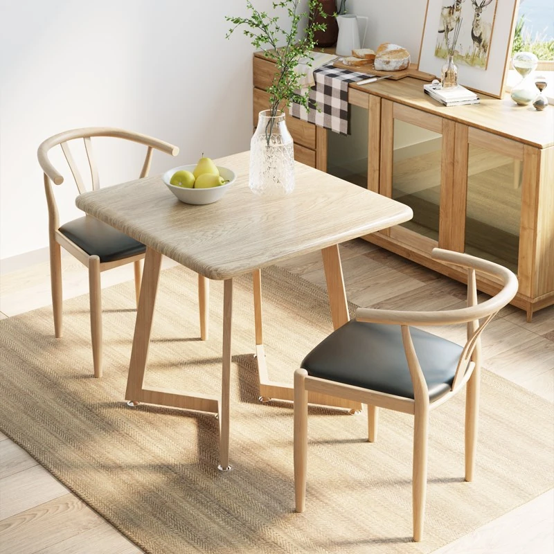 北欧スタイルのモダンなダイニングテーブルセット!シンプルで洗練された正方形テーブル、小さなスペースにも最適なデザイン。カジュアルな会話やリラックスしたひとときを演出する、理想的なサロンテーブルです。