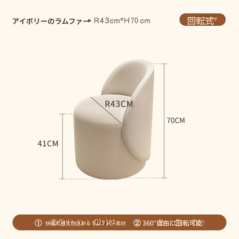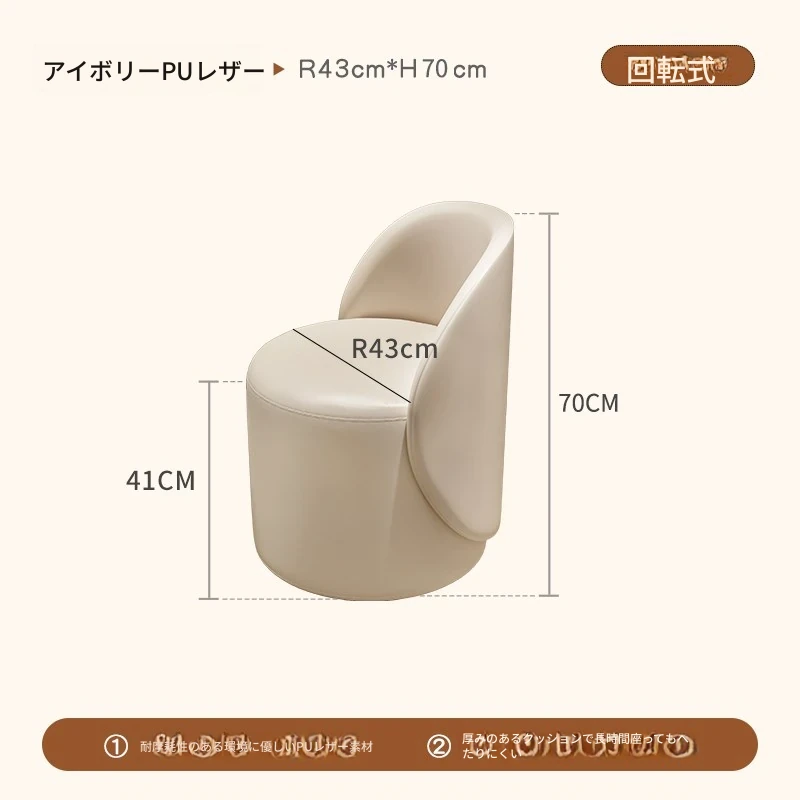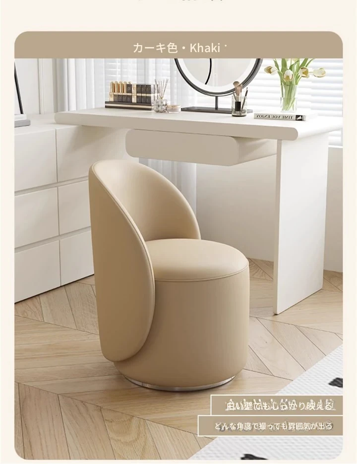 回転式メイクスツール 化粧台用 おしゃれな高級感 椅子 寝室にぴったり シンプルなデザイン 背もたれ付き 家庭用 人気のクリームカラー