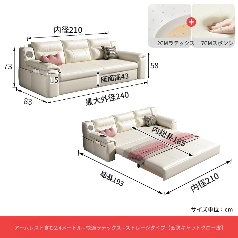 手すり付き2.4メートル-快適ラテックス-収納タイプ【五防猫抓皮】