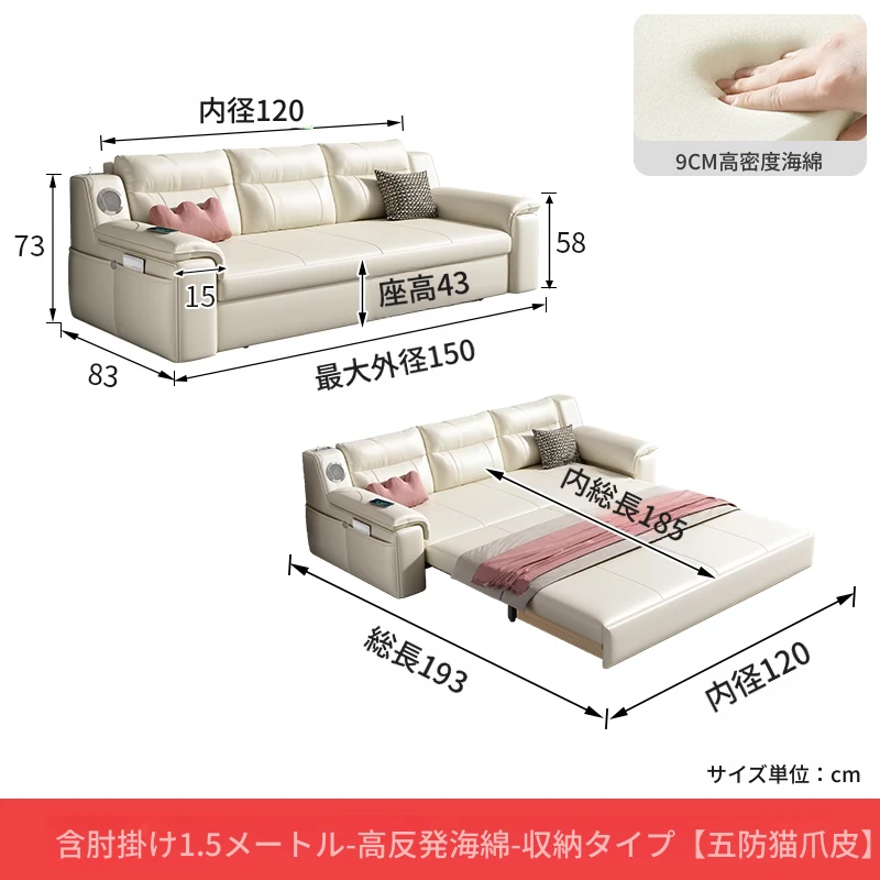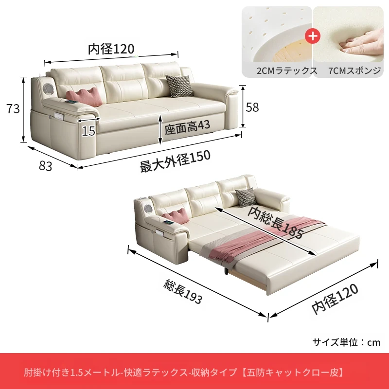手すり付き1.5メートル-快適ラテックス-収納タイプ【五防猫抓皮】