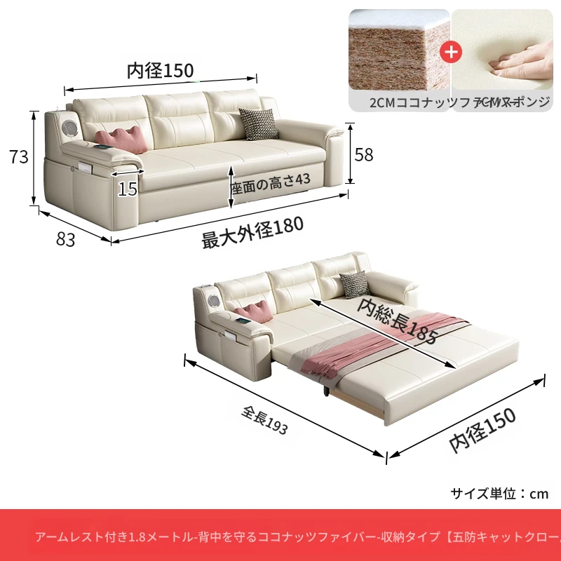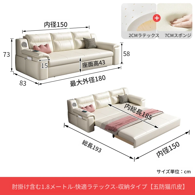 手すり付き1.8メートル-快適ラテックス-収納タイプ【五防猫抓皮】