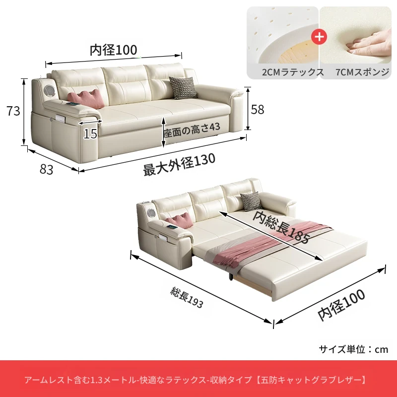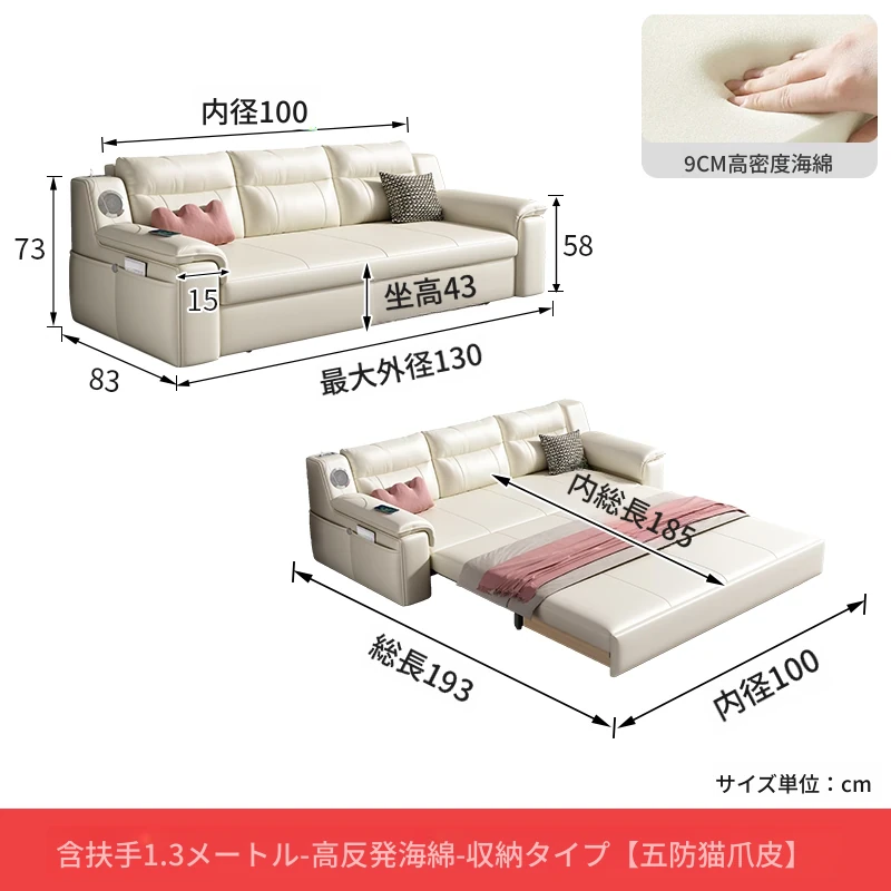 手すり付き1.3メートル-快適ラテックス-収納タイプ【五防猫抓皮】