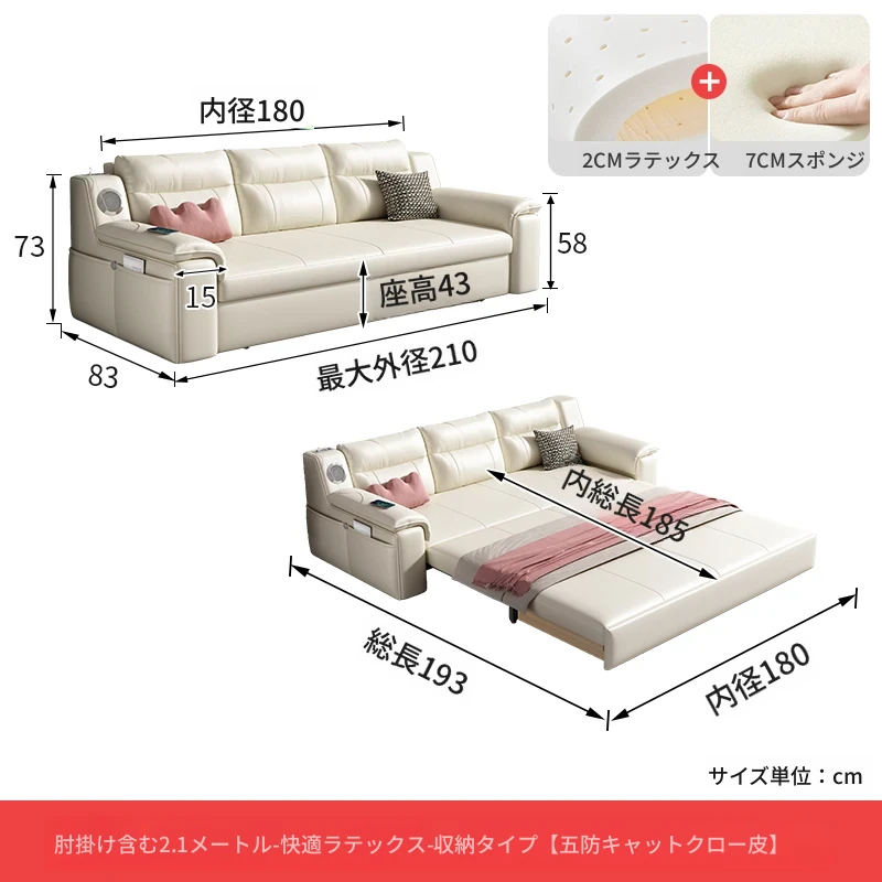 手すり付き2.1メートル-快適ラテックス-収納タイプ【五防猫抓皮】
