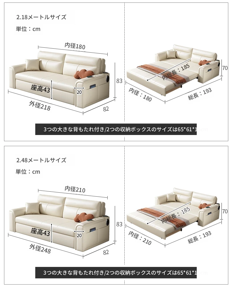 手すり付き2.48メートル-背骨保護ココナッツタイプ-収納ボックス付き