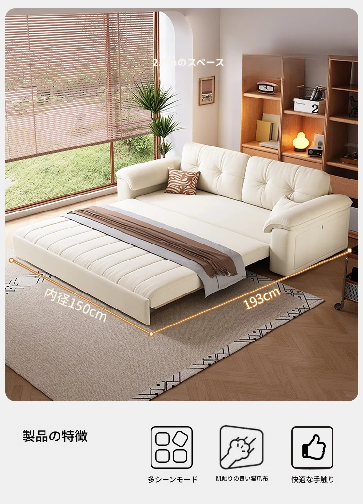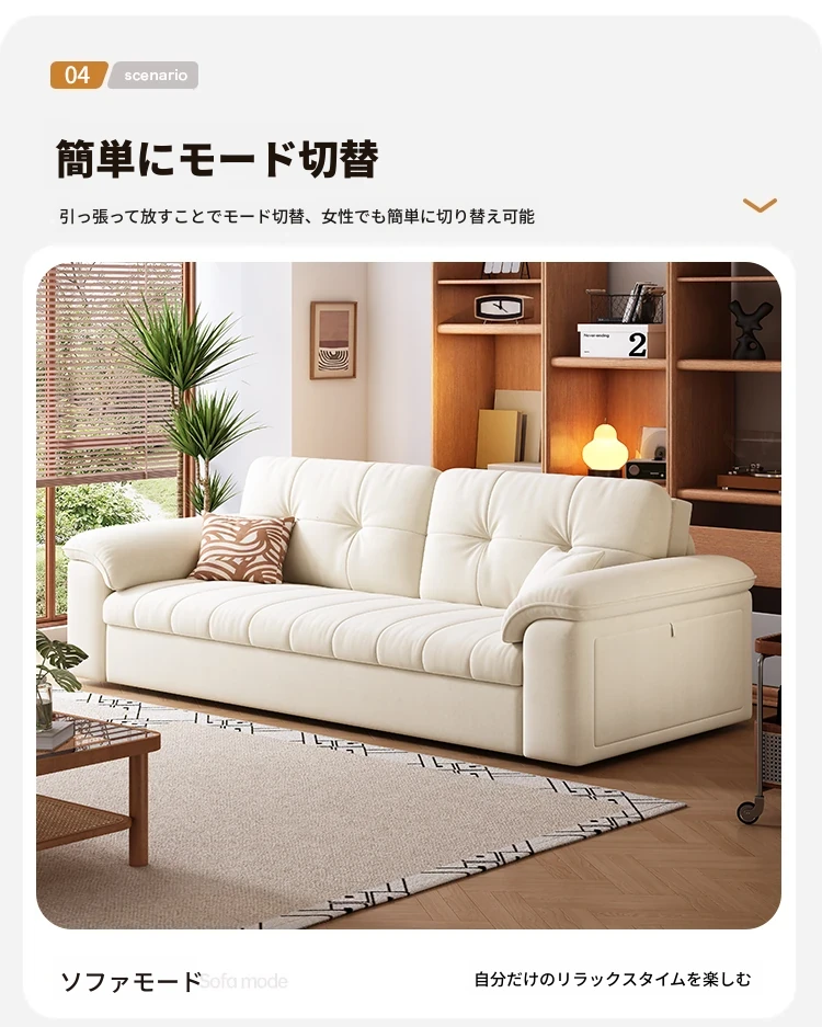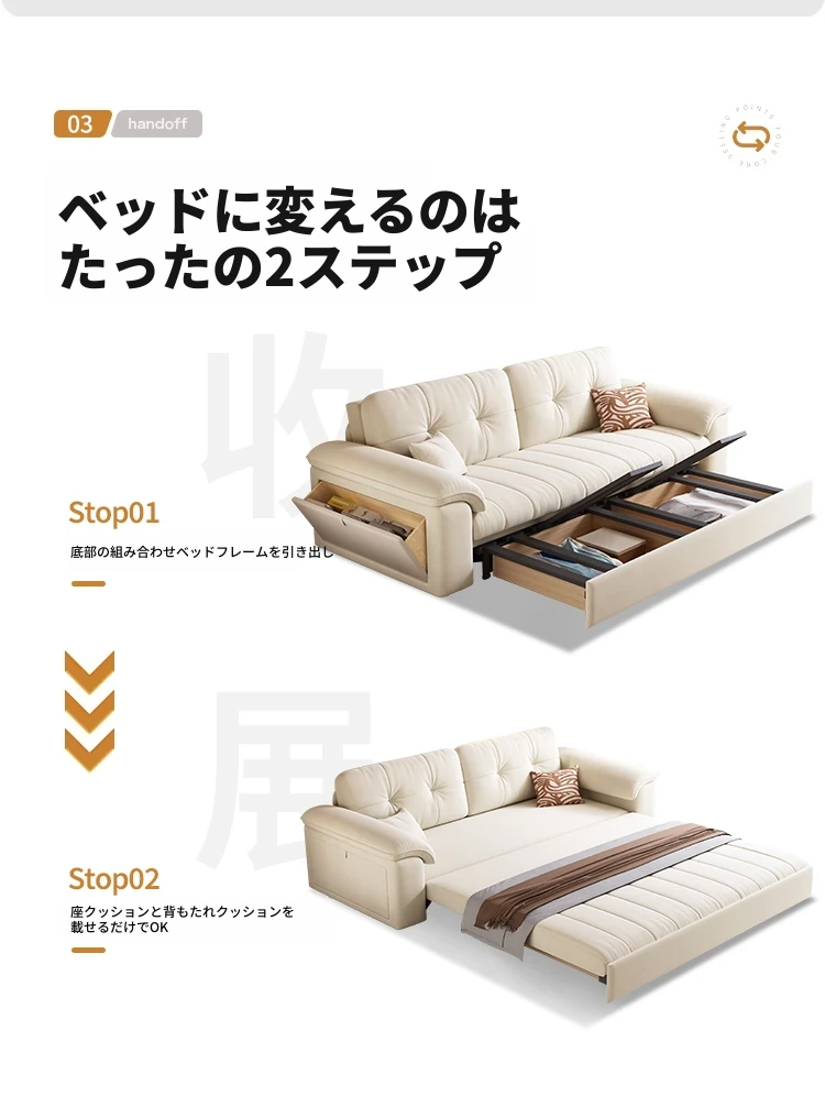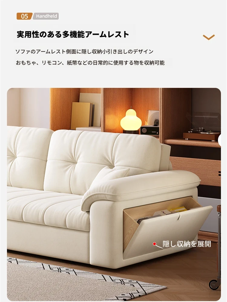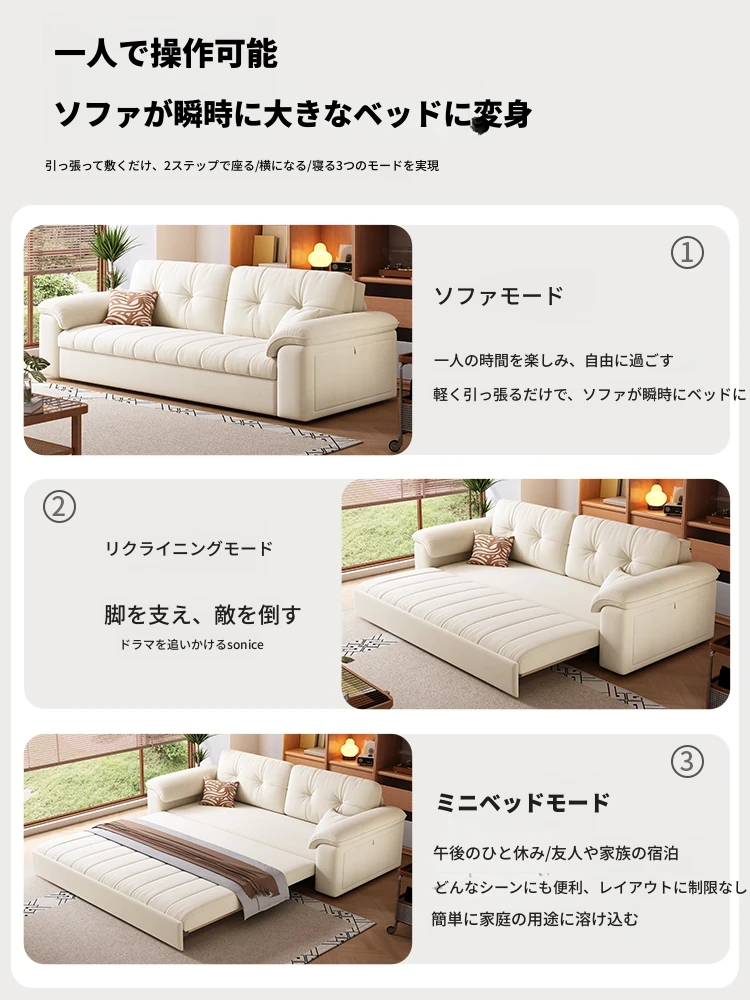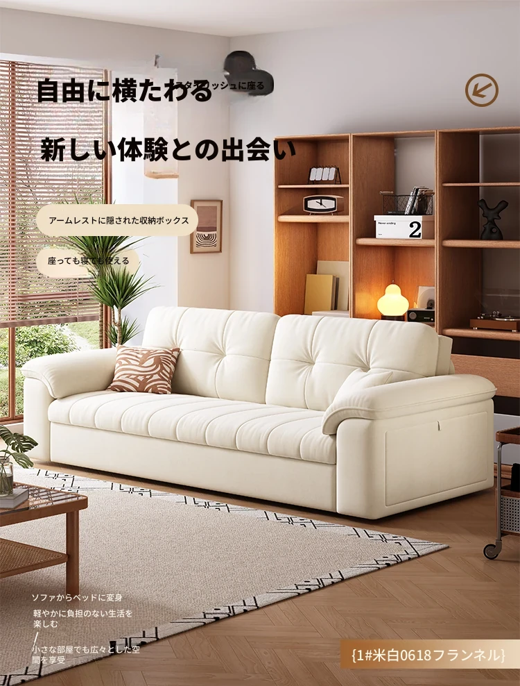 多機能収納ソファベッド 一体型・2way・小型リビング向け・シングル折りたたみ・伸縮可能・トレンディなクリーム風デザイン【省スペース&おしゃれな空間作り】