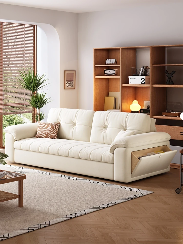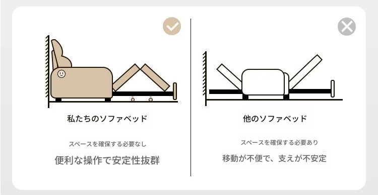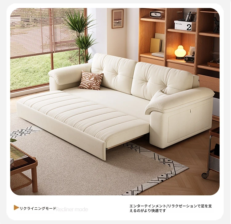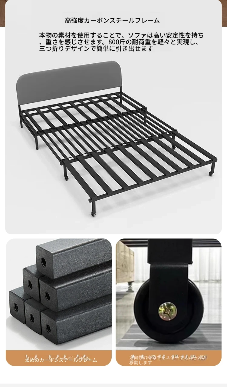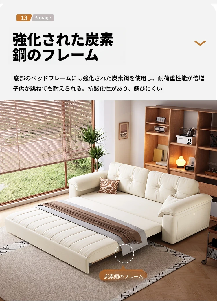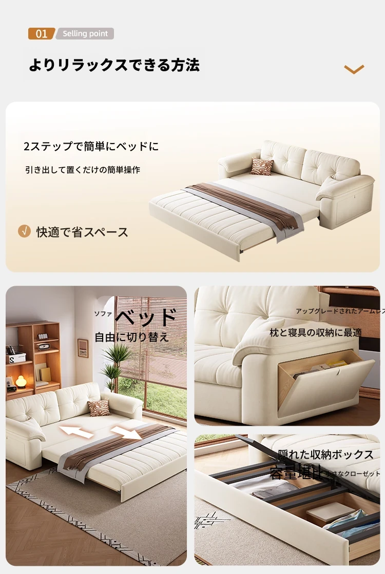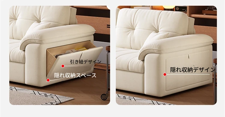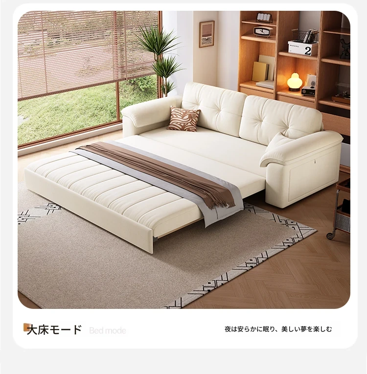多機能収納ソファベッド 一体型・2way・小型リビング向け・シングル折りたたみ・伸縮可能・トレンディなクリーム風デザイン【省スペース&おしゃれな空間作り】