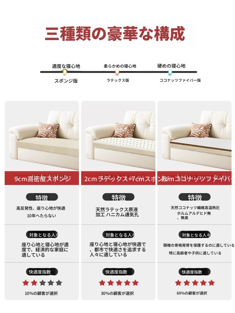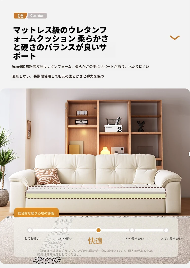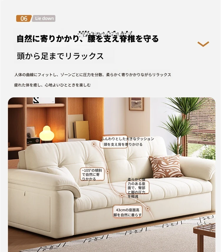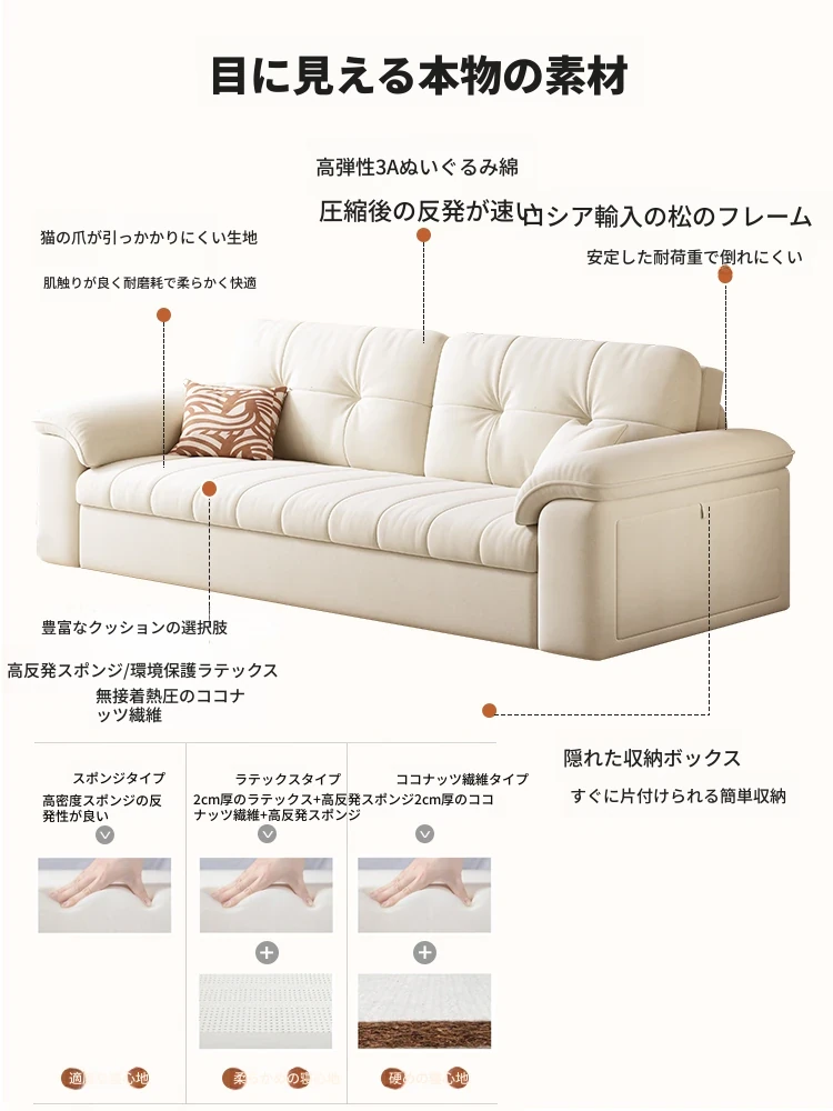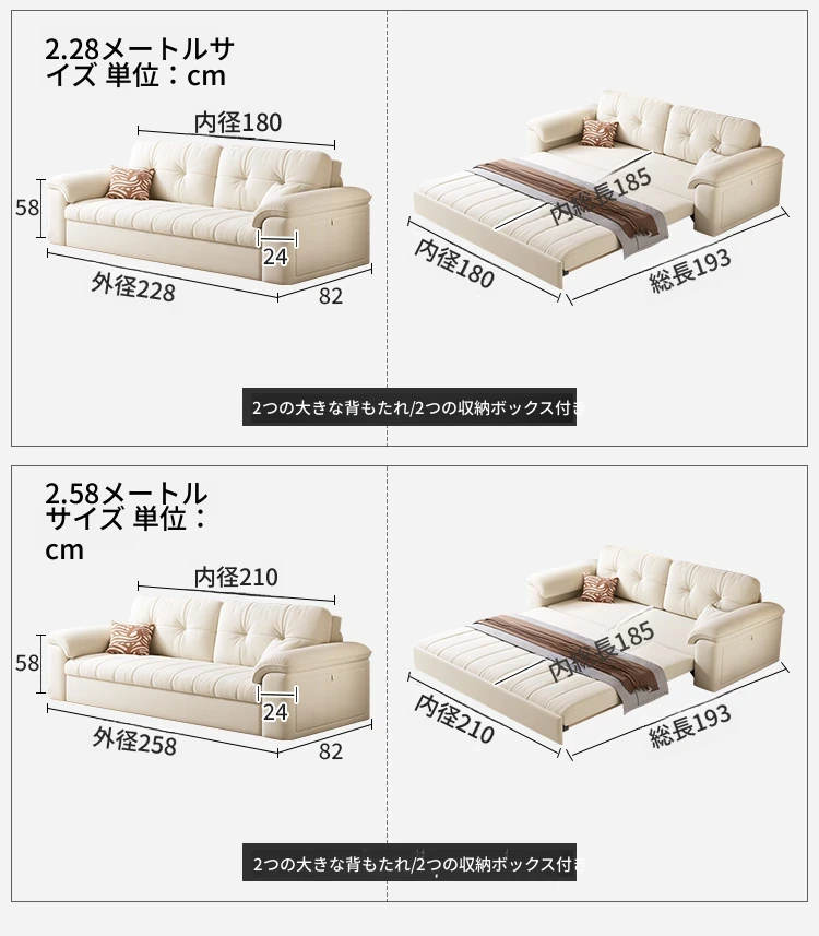 含扶手2.58米-背筋サポートココナッツタイプ-収納付き