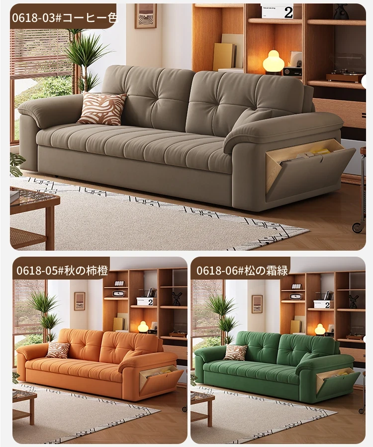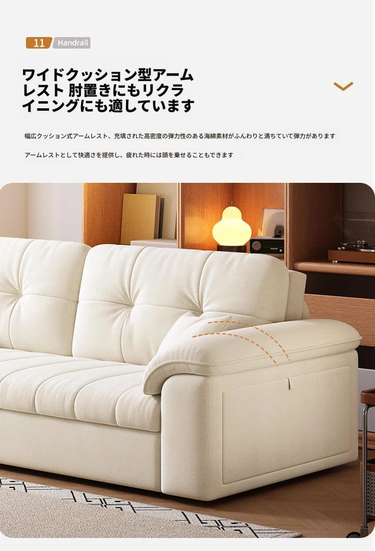 含扶手2.28米-背筋サポートココナッツタイプ-収納付き