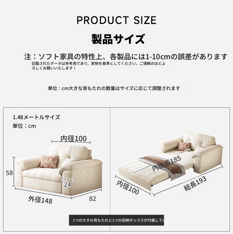 含扶手1.48米-背筋サポートココナッツタイプ-収納付き