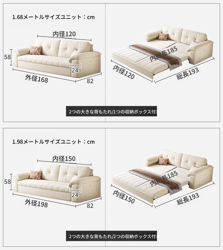 含扶手1.68米-背筋サポートココナッツタイプ-収納付き